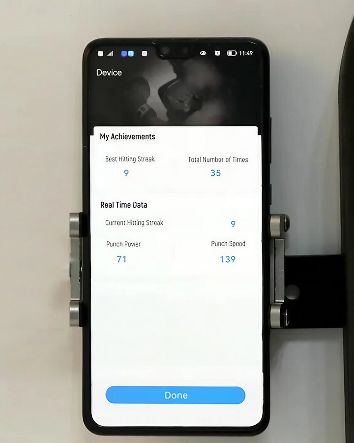 The mobile app that pairs with the interactive boxing machine acts as your own personal cornerman by tracking your punching performance and progress.